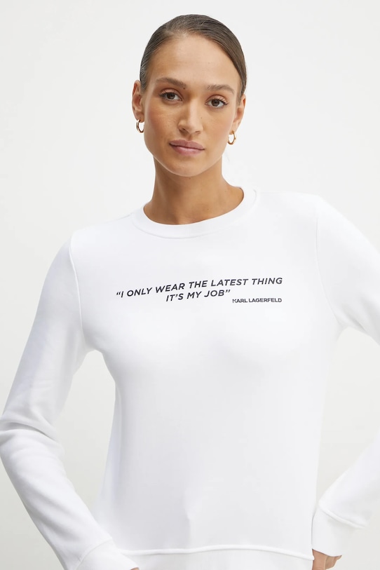 Эта толстовка Karl Lagerfeld выполнена из принтованного трикотажа. Она изготовлена из исключительно комфортного материала с высоким содержанием хлопка. - Модели линейки Karl Cares изготовлены из материалов, произведенных в ходе устойчивого, экологически чистого процесса производства. - Простой дизайн, не стесняющий движений. - Классический круглый вырез. - Рукава и низ изделия отделаны манжетами для защиты от неблагоприятных погодных условий. - Тонкий, слегка эластичный трикотаж. - Длина рукава: 64,5 см. - Длина: 60 см. - Ширина под мышками: 48 см. - Размеры указаны для размера: S.