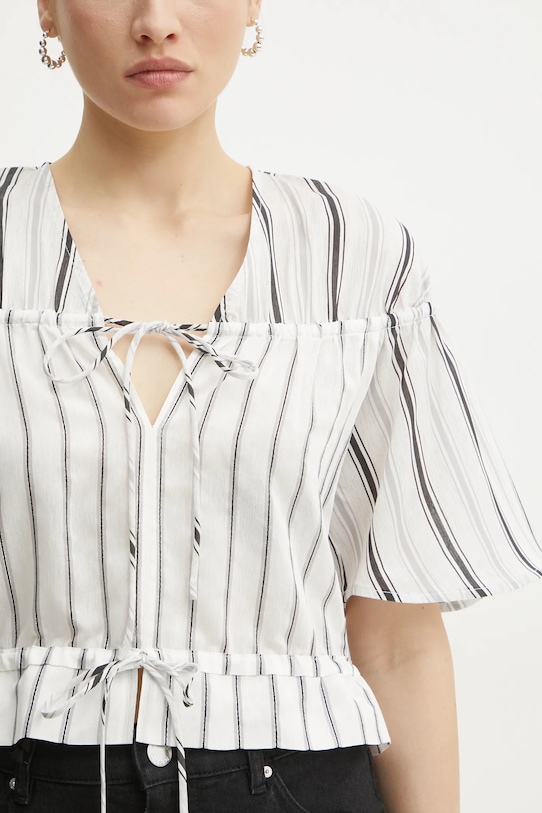 - Простой дизайн, не стесняющий движений. - Регулируемая талия со шнурками для индивидуальной посадки. - Острый вырез с завязками. - Тонкая, неэластичная ткань. - Длина: 47 см. - Ширина под мышками: 48 см. - Размеры указаны для размера: S.