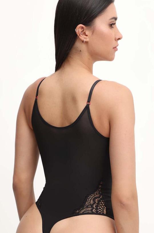 Утягивающее боди из коллекции Scandale. Изготовлено из эластичного, гладкого трикотажа. Высококачественный материал, изготовленный в соответствии с принципами устойчивого развития. - Изделие содержит переработанные волокнистые материалы. - Приталенная модель, не стесняющая движений и легко подходящая под другие слои одежды. - Мягкая чашка без косточек и других жестких элементов обеспечивает полный комфорт использования. - Регулируемые бретели обеспечивают оптимальную поддержку груди и позволяют индивидуально подогнать по фигуре, не раздражая кожу на плечах. - Двойной слой спереди для коррекции фигуры. - Модель без застежки в области шагового шва. - Подкладка с хлопковой вставкой в области шагового шва. - Декоративная кружевная аппликация. - Длина: 62 см. - Ширина под мышками: 36 см. - Размеры указаны для размера: S.