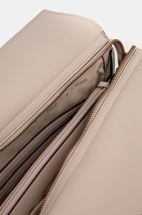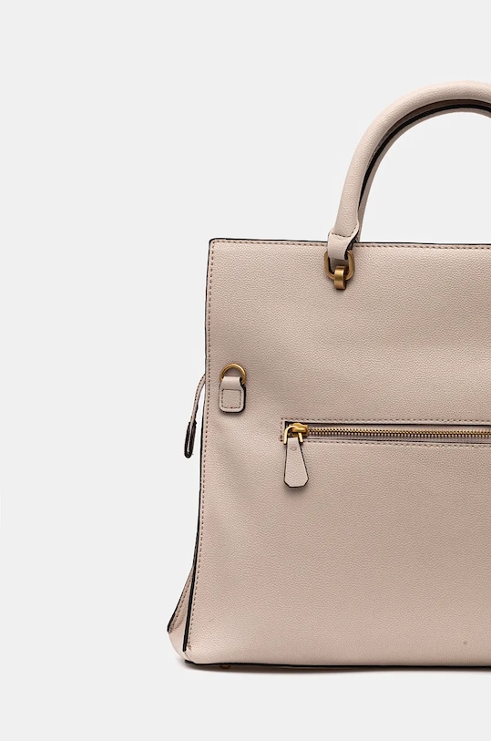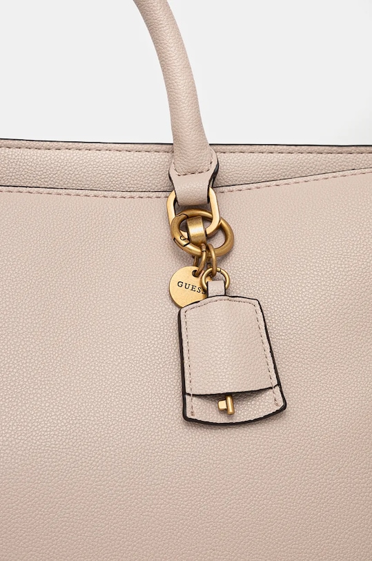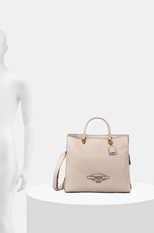 Сумка среднего размера из коллекции Guess. Изготовлена из искусственной кожи, с застёжкой. - Застежка-молния. - Имеет три отделения, одно из которых застегивается на молнию. - Три внутренних кармана: один на молнии, два накладных. - Карман на молнии на задней стороне позволяет безопасно хранить телефон или другие мелкие предметы. - Модель оснащена металлическими ножками, защищающими дно сумки. - Имеет ручки и съемный регулируемый ремень. - Сумка для ношения в руке или на плече. - В комплект модели входит брелок. - Модель на подкладке. - Не подходит для формата А4. - Входящий в комплект тканевый чехол защищает изделие от пыли. - Минимальная длина ремешка: 79 см. - Максимальная длина ремня: 97 см. - Длина ручки: 38 см. - Глубина: 10,5 см. - Высота: 31/22,5 см. - Ширина у основания: 36 см.