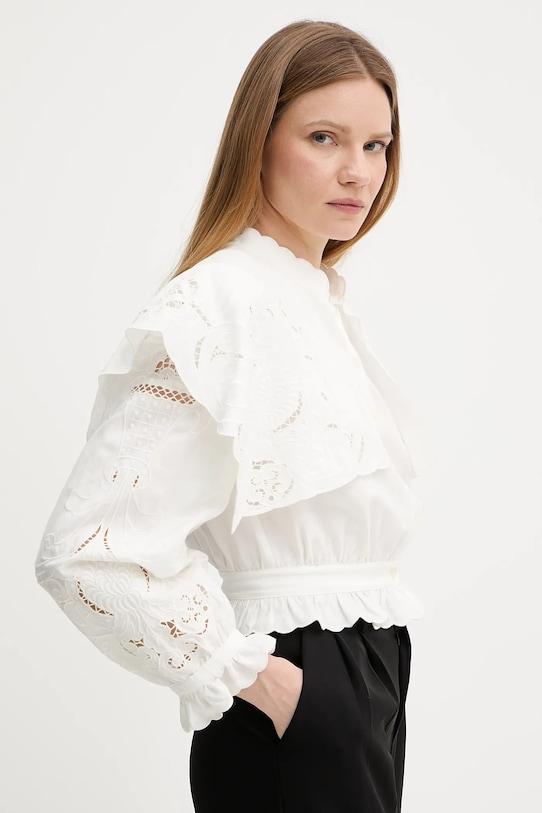 Эта рубашка из коллекции Twinset выполнена из ткани с декоративной вышивкой. Она изготовлена из дышащего, воздушного материала с высоким содержанием льна. - В комплект поставки входит чехол для хранения и транспортировки. - Простой дизайн, не стесняющий движений. - Длинные, пышные рукава. - Мягкие манжеты с застежкой на пуговицы. - Модель с воротником-стойкой. - Застежка на пуговицы позволяет легко надевать и снимать. - Модель с декоративными оборками. - Тонкая, неэластичная ткань. - Длина: 50 см. - Ширина под мышками: 47 см. - Размеры указаны для размера: 36.