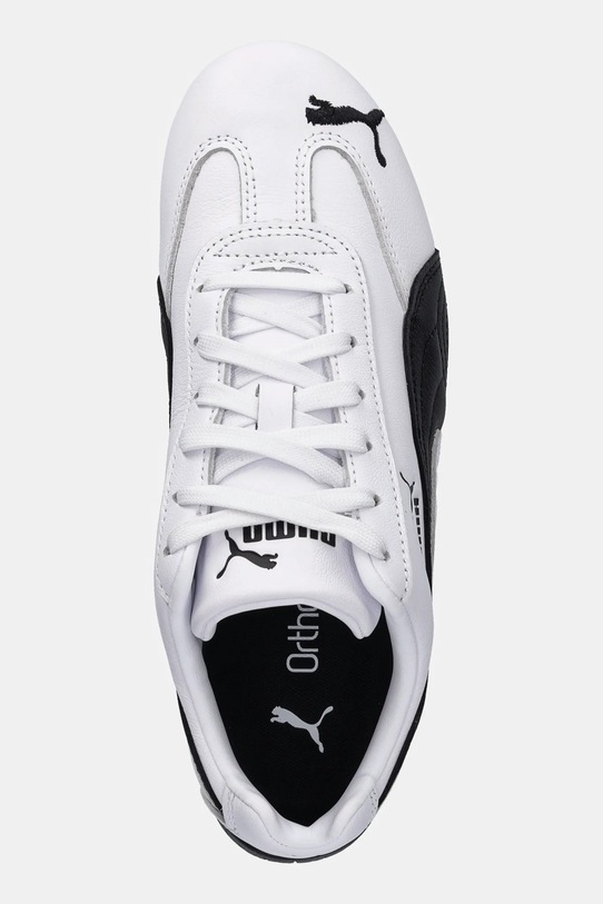Кроссовки из коллекции Puma из натуральной кожи. Модель имеет усиленный верх для устойчивости. - Круглый, слегка утолщенный носок. - Жесткий задник стабилизирует пятку и удерживает ногу в обуви, не давая ей выскальзывать во время движения. - Резиновая подошва прочная и устойчивая к повреждениям. - Съемная, легко чистящаяся текстильная вставка. – Лёгкая, специально разработанная стелька Ortholite отличается исключительной мягкостью и гибкостью, адаптируется к форме стопы, дольше сохраняя свою первоначальную толщину и обеспечивая отличную амортизацию. Пенный материал, из которого она изготовлена, обеспечивает оптимальную воздухопроницаемость и обладает высокими антибактериальными свойствами, предотвращая рост бактерий, грибков и появление неприятных запахов. - Классическая шнуровка позволяет индивидуально подогнать обувь по ноге.