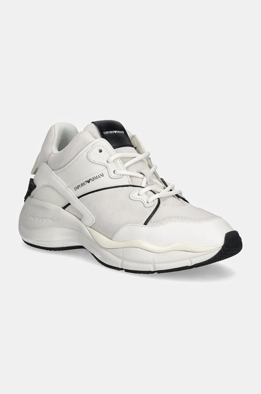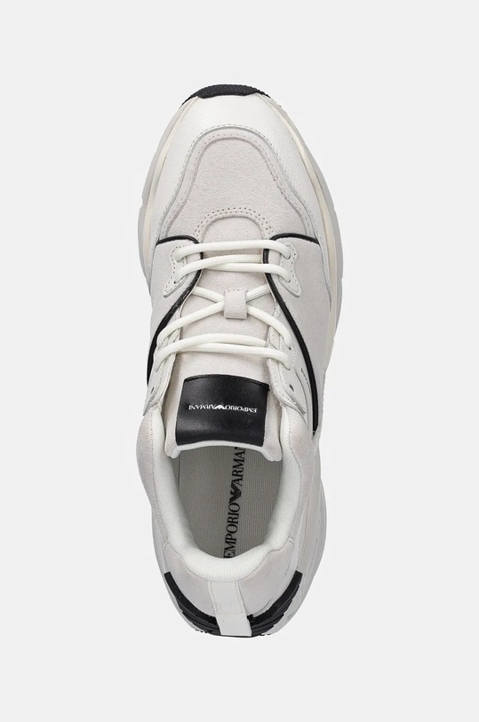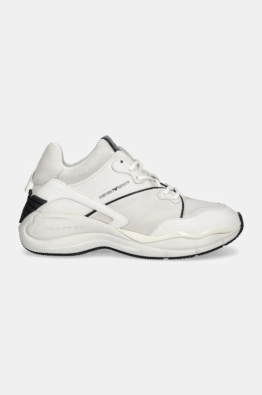 Эти кроссовки из коллекции Emporio Armani изготовлены из комбинации замши и кожи с покрытием. Усиленный верх обеспечивает устойчивость. - Круглый, жёсткий носок. - Прорезиненная область на носке ботинка обеспечивает дополнительную защиту пальцев ног. - Усиленный задник стабилизирует пятку и удерживает ногу в обуви, не давая ей выскользнуть во время движения. - Резиновая подошва прочная и устойчивая к повреждениям. - Съемную вставку легко чистить и обновлять. - Мягкая подкладка из текстильного материала предотвращает раздражение и обеспечивает высокий комфорт при ношении. - Классическая шнуровка позволяет индивидуально подогнать обувь по ноге. - Петля сзади облегчает надевание и снятие обуви. - Платформенная модель. - Высота платформы: 5,5 см. - Длина вставки: 23,5 см. - Размеры указаны для размера: 37.