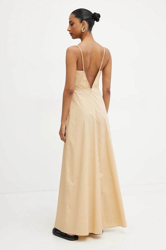 Платье из коллекции Patrizia Pepe, выполненное из тонкой, неэластичной ткани. Модель выполнена из дышащего хлопкового материала. - Модель из линейки Go Green, изготовленная из волокон, полученных с использованием экологичных производственных процессов, что снижает их воздействие на окружающую среду. - Модель макси длины. - Приталенный верх и свободный низ. - Застегивается на потайную молнию и крючок сзади. - Острый вырез. - Нерегулируемые, несъемные лямки. - Модель без подкладки. - Длина: 130,5 см. - Ширина под мышками: 44 см. - Размеры указаны для размера: 36.