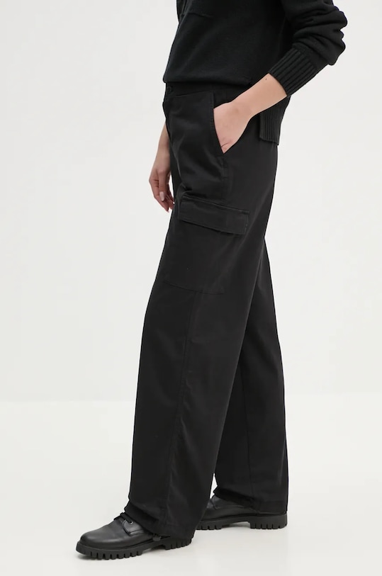 Эти брюки Calvin Klein Jeans изготовлены из гладкой ткани, отличающейся исключительным комфортом и воздухопроницаемостью, с высоким содержанием хлопка. - Брюки свободные в области бедер и ягодиц. - Модель с высокой талией, застежкой на пуговицы и молнию. - Широкие штанины. - Ножки отделаны завязками и стопорами для лучшей посадки. - Два боковых накладных кармана. - Накладной карман на задней стороне позволяет легко и безопасно хранить телефон или другие мелкие предметы. - Карман для переноски обеспечивает дополнительное место для хранения предметов первой необходимости. - Тонкая, слегка эластичная ткань. - Ширина талии: 35 см. - Ширина бедер: 50 см. - Высота талии: 28 см. - Ширина штанины внизу: 24 см. - Ширина штанины: 30 см. - Длина внешнего шва: 105 см. - Размеры указаны для размера: 27.