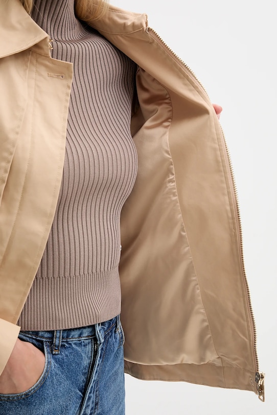 Куртка из коллекции Guess. Эта модель без подкладки выполнена из гладкой ткани. Модель выполнена из исключительно комфортного материала с высоким содержанием хлопка. Этот продукт частично изготовлен из сертифицированного органического хлопка, выращенного и собранного с растений, не содержащих ГМО, без использования удобрений и пестицидов. Процесс производства органического хлопка более экологичен, а изделия из него полезнее для здоровья. - Простой дизайн, не стесняющий движений. - Рукава реглан благодаря своей конструкции обеспечивают большую свободу движений. - Неутепленная модель с подкладкой. - Застежка-молния. - Модель с декоративными клапанами. - Модель с воротником. - Внешние карманы на молнии. - Пояс на талии. - Длина: 64 см. - Ширина под мышками: 53 см. - Размеры указаны для размера: S.