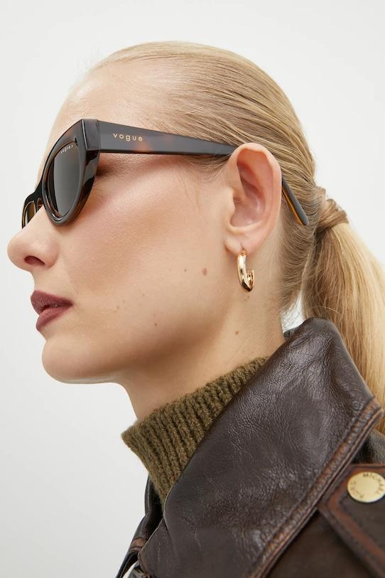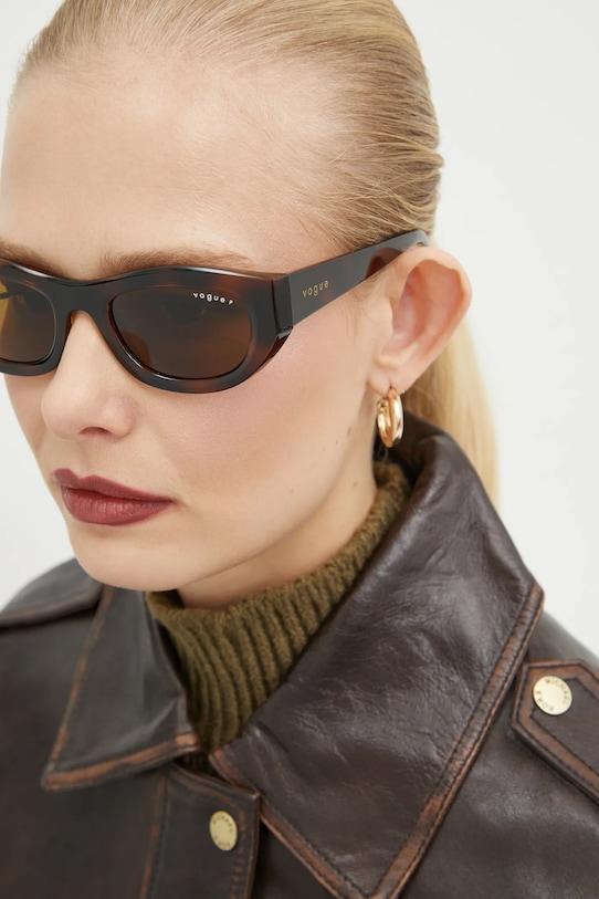 Солнцезащитные очки из коллекции VOGUE. Модель с гладкими линзами и пластиковой оправой. - Категория 3 (пропускает 8–18% света) — самая распространённая и универсальная категория затемняющих фильтров. Очки категории 3 идеально подходят для повседневного использования в солнечные дни и для отдыха в жарких странах. Поляризованные солнцезащитные очки защищают глаза от яркого света, отражаемого такими поверхностями, как снег, вода, стекло или песок. Поляризованные линзы пропускают вертикальные лучи, отражая горизонтальные. Поляризованные солнцезащитные очки предотвращают блики независимо от времени года. Они рекомендуются для отдыха на пляже, занятий спортом и вождения. - УФ-фильтр защищает чувствительную радужную оболочку от UVA- и UVB-излучения. - В комплект модели входит чехол. - Ширина рамы: 140 мм. - Ширина линзы: 50 мм.