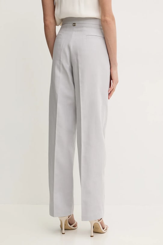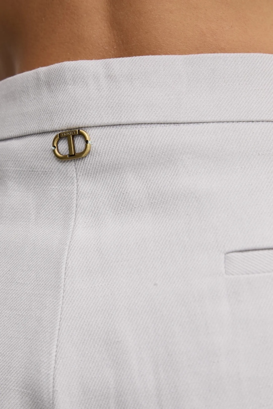 Брюки из коллекции Twinset из тонкой, неэластичной ткани. Модель выполнена из исключительно комфортного материала с высоким содержанием хлопка. - Модель с высокой талией, застежкой на пуговицы и молнию. - Два накладных кармана спереди. - Штанина отутюживается в складку. - Крой с зауженными брючинами, не стесняющими движений. - Тонкая, неэластичная ткань. - Ширина талии: 38 см. - Ширина бедер: 50 см. - Высота талии: 26 см. - Ширина штанины внизу: 22 см. - Ширина штанины: 30 см. - Длина внешней части штанины: 107 см. - Размеры указаны для размера: 36.