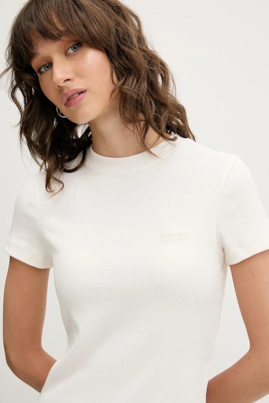 Футболка из коллекции Tommy Jeans выполнена из тонкой, высокоэластичной ткани. Модель выполнена из исключительно комфортного материала с высоким содержанием хлопка. - Эта модель содержит регенерированные хлопковые волокна. Новые волокна и пряжа производятся из старых текстильных отходов и используются для производства новой одежды. - Приталенный крой, не стесняющий движений. - Классический круглый вырез. - Плоские швы защищают кожу от натирания и раздражения и обеспечивают высокий уровень комфорта во время занятий спортом. - Вышитый логотип бренда на груди. - Модель выполнена из трикотажного полотна в рубчик, которое отличается особой эластичностью и мягкостью, благодаря чему хорошо облегает тело и обеспечивает комфорт при носке. - Длина: 48,5 см. - Ширина под мышками: 39 см. - Размеры указаны для размера: S.