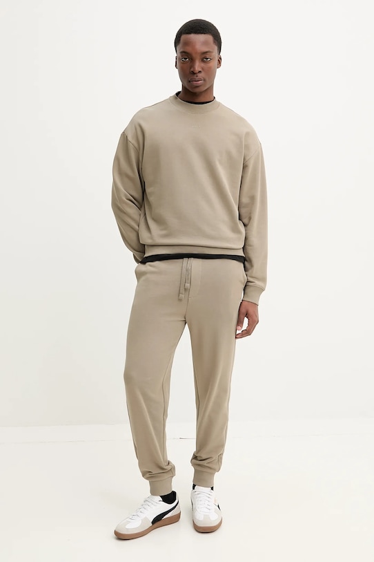 Спортивные брюки из коллекции HUGO. Эти лёгкие и удобные брюки из эластичной ткани идеально подходят для повседневной носки. - Инициатива HUGO «Clean Up Your Act» – поддержка производства хлопка в Африке. Бренд поддерживает инициативу «Хлопок, сделанный в Африке» (CmiA), которая помогает мелким фермерам в Африке совершенствовать свои навыки в сельском хозяйстве и сохранять природные ресурсы, а также способствует устойчивому развитию (без использования генетически модифицированных семян и вырубки первичных лесов). - Свободный крой. - Эластичный пояс со шнурками. - Накладные карманы. - Ножки отделаны манжетами. - Ширина талии: 39 см. - Ширина бедер: 51 см. - Высота талии: 34 см. - Ширина штанины внизу: 13 см. - Ширина штанины: 28 см. - Длина штанины: 104 см. - Размеры указаны для размера: M.