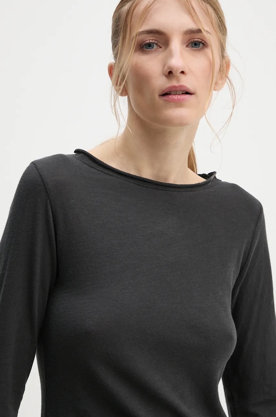 - Приталенный крой, не стесняющий движений. - Классический круглый вырез. - Необработанные края. - Тонкий, эластичный трикотаж. - Длина рукава: 62 см. - Длина: 58 см. - Ширина под мышками: 44 см. - Размеры указаны для размера: S.