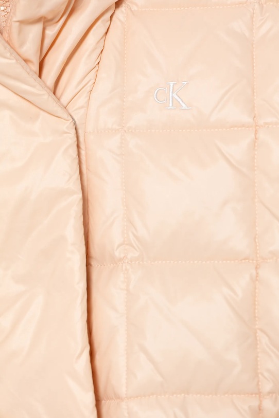Эта детская куртка из коллекции Calvin Klein Jeans утеплена и изготовлена из гладкого материала. Стёганая конструкция дополнена синтетическим утеплителем для дополнительного комфорта в прохладную погоду. - Изоляция из волокон REPREVE, изготовленных из переработанных пластиковых бутылок. - Свободный крой, обеспечивающий полную свободу движений. - Молния по всей длине с пристегивающимся ветрозащитным клапаном. - Поднятый воротник и несъемный капюшон обеспечивают дополнительную защиту от холода. - Крой рукава со спущенной линией плеча не ограничивает подвижность. - Рукава и низ изделия отделаны манжетами для защиты от неблагоприятных погодных условий. - Два боковых кармана с застежкой на кнопку. - Дополнительный внутренний карман позволяет безопасно хранить мелкие предметы. - Утепленная модель с подкладкой.