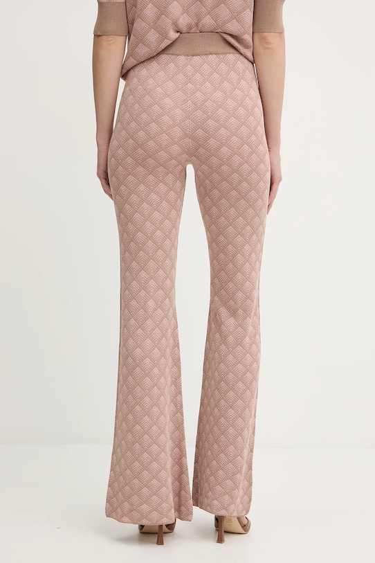 Эти брюки из коллекции Silvian Heach изготовлены из тонкого, высокоэластичного трикотажа. Они изготовлены из исключительно комфортного и дышащего материала, идеально подходящего для теплого времени года. - Брюки облегают бедра и ягодицы. - Расклешенные штанины. - Высокая талия с резинкой предотвращает скольжение во время движения. - Материал с металлической нитью. - Ширина талии: 32 см. - Ширина бедер: 42 см. - Высота талии: 34 см. - Ширина штанины внизу: 32,5 см. - Ширина штанины: 25 см. - Длина внешнего шва: 118 см. - Размеры указаны для размера: S.