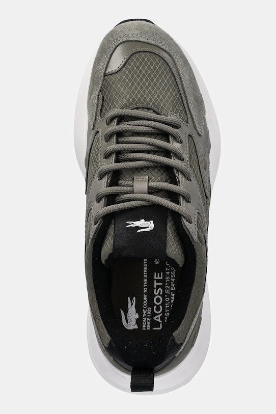 Эти кроссовки из коллекции Lacoste изготовлены из комбинации искусственной замши, текстиля и синтетических материалов. Они оснащены прочной и износостойкой резиновой подошвой. - Eco Ortholite — стелька, которая повторяет форму стопы, обеспечивая комфорт и амортизацию. Стелька обладает антибактериальными свойствами, улучшает циркуляцию воздуха и защищает от неприятного запаха пота. - Круглый, слегка утолщенный носок. - Усиленный задник обеспечивает отличную поддержку лодыжки и пятки. - Петля сзади облегчает надевание и снятие обуви. - Текстильная внутренняя часть комфортна для ног и облегчает содержание обуви в чистоте. - Резиновая подошва прочная и устойчивая к повреждениям. - Классическая шнуровка позволяет индивидуально подогнать обувь по ноге. - Длина вставки: 27 см. - Размеры указаны для размера: 43.