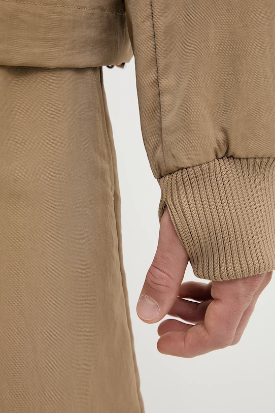 - Нижний край отделан кулиской со стопорами, которая благодаря возможности регулирования обхвата низа повышает изоляцию от холода.
