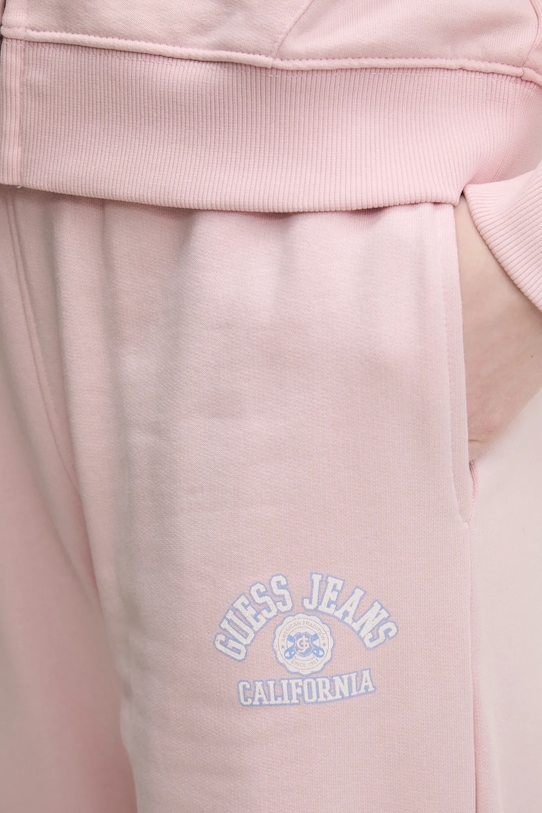 Спортивные брюки из коллекции Guess Jeans из тонкой эластичной ткани. Изготовлены из исключительно комфортного хлопкового материала. - Продукция GUESS JEANS разрабатывается таким образом, чтобы производить как можно меньше отходов без ущерба для качества и долговечности. - Брюки слегка приталенные на бедрах. - Крой с зауженными брючинами, не стесняющими движений. - Эластичный пояс и дополнительная регулировка ширины с помощью шнурков для предотвращения сползания во время движения. - Два боковых накладных кармана. - Ножки отделаны удобными эластичными манжетами. - Модель с принтом. - Ширина талии: 36 см. - Ширина бедер: 52 см. - Высота талии: 33 см. - Ширина штанины внизу: 18 см. - Ширина штанины: 29,5 см. - Длина внешней части штанины: 106 см. - Размеры указаны для размера: S.