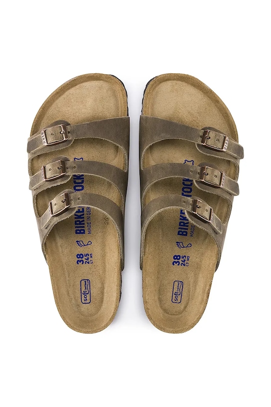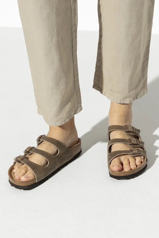 Шлёпанцы из коллекции Birkenstock из натуральной кожи. Стандартная ширина стельки. Рассчитаны на стопу стандартной ширины. - Продукция BIRKENSTOCK изготавливается с использованием устойчивого и экологически чистого производственного процесса. - Вал с регулируемой шириной. - Оригинальная стелька BIRKENSTOCK благодаря особому контуру обеспечивает вашим ногам максимальный комфорт в течение многих часов. - В передней части, около пальцев, имеются приподнятые углубления, обеспечивающие естественное движение пальцев. - Углублённая чаша в пятке поддерживает пятку в естественном положении. Это обеспечивает стопе почти такую же поддержку в шлёпанцах, как и в обуви с закрытым носком. - Мягкая стелька — анатомический пенный слой, расположенный в подошве, обеспечивает длительную амортизацию и комфорт использования.