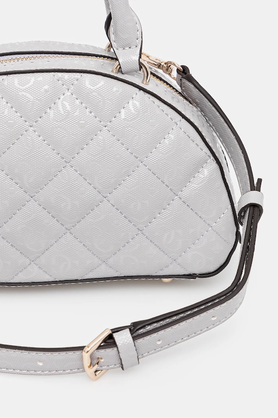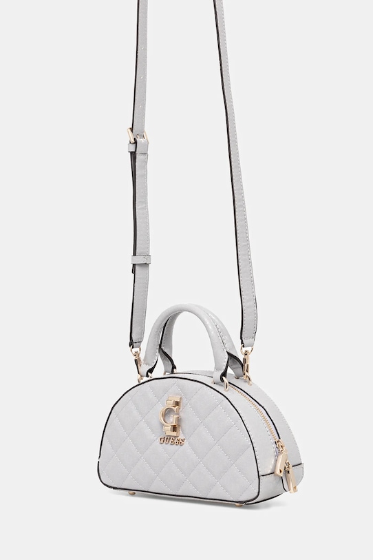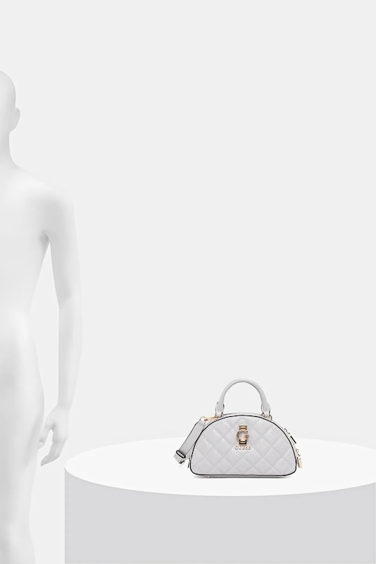 Небольшая сумочка из коллекции Guess. Модель с застёжкой-крючком выполнена из экокожи. Материал плотный и хорошо держит форму. - Отделение на молнии. - Имеет внутренние карманы, в том числе один на молнии. - Усиленное дно сумки позволяет изделию долго сохранять форму. - Модель оснащена металлическими ножками, защищающими дно сумки. - Сумка для ношения в руке или на плече. - Короткие ручки для удобной переноски в руке. - Съемный регулируемый ремешок позволяет индивидуально подогнать посадку. - Не подходит для формата А4. - Модель на подкладке. - Входящий в комплект тканевый чехол защищает изделие от пыли. - Количество внутренних карманов на молнии: 1. - Количество внутренних накладных карманов: 1. - Глубина: 8,5 см. - Высота: 13,5 см. - Ширина у основания: 23,5 см.