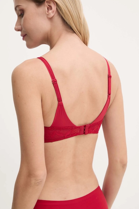 Бюстгальтер с треугольными чашками из коллекции Chantelle. Модель выполнена из кружева, эластичного и облегающего. - Сертификация Oeko-Tex Standard 100 гарантирует, что при производстве изделия используются экологически чистые и нетоксичные материалы и красители. - Мягкая чашечка без косточек и других жестких элементов обеспечивает полный комфорт использования. - Регулируемые бретели обеспечивают оптимальную поддержку груди и позволяют индивидуально подогнать по фигуре, не раздражая кожу на плечах. - Эластичная, не сдавливающая вставка внизу усиливает поддержку груди и обеспечивает правильное прилегание к телу. - Крепление осуществляется двойными четырехпозиционными крючками. - Дополнительный слой материала в виде подкладки увеличивает покрытие и обеспечивает дополнительный комфорт во время активности.