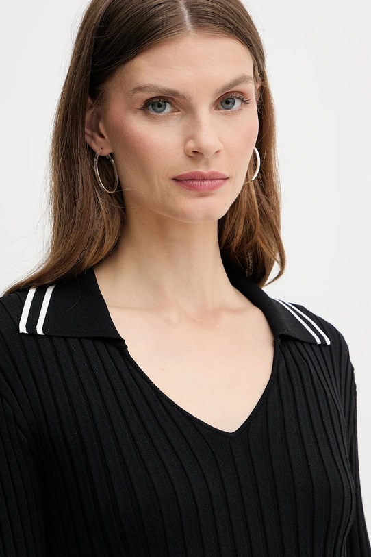 - Приталенный крой, не стесняющий движений. - Острый вырез. - Модель с воротником. - Трикотажное полотно в рубчик. - Длина рукава: 59 см. - Длина: 53 см. - Ширина под мышками: 35 см. - Размеры указаны для размера: S.