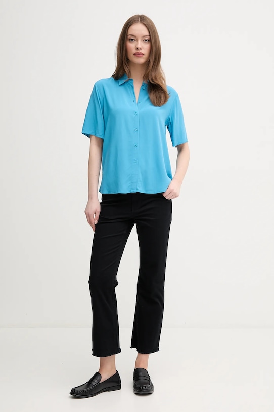 Эта рубашка из коллекции United Colors of Benetton выполнена из гладкой ткани. Модель выполнена из дышащего вискозного материала. - Изготовлено из экологически чистого материала LENZING ECOVERO. LENZING ECOVERO производится из органической целлюлозы и древесной массы, используя на 50% меньше воды, чем популярная вискоза. - Простой дизайн, не стесняющий движений. - Модель с воротником. - Короткий рукав. - Удобная застежка на кнопки позволяет легко надевать и снимать. - Тонкая, неэластичная ткань. - Длина: 67 см. - Ширина под мышками: 50 см. - Размеры указаны для размера: S.