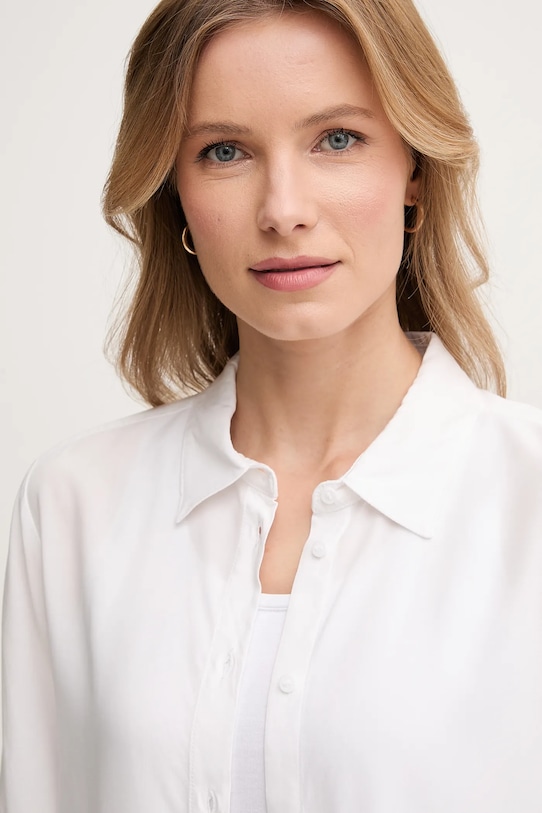 Эта рубашка из коллекции United Colors of Benetton выполнена из гладкой ткани. Модель выполнена из дышащего вискозного материала. - Изготовлено из экологически чистого материала LENZING ECOVERO. LENZING ECOVERO производится из органической целлюлозы и древесной массы, используя на 50% меньше воды, чем популярная вискоза. - Простой дизайн, не стесняющий движений. - Модель с воротником. - Короткий рукав. - Удобная застежка на кнопки позволяет легко надевать и снимать. - Тонкая, неэластичная ткань. - Длина: 67 см. - Ширина под мышками: 50 см. - Размеры указаны для размера: S.