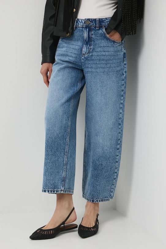 Эти широкие джинсы с низкой посадкой из коллекции Medicine изготовлены из стираного денима. - Материал с сертификатом OEKO-TEX Standard 100 гарантирует, что текстильные изделия, на которых он нанесен, не содержат вредных и потенциально опасных для человека и окружающей среды веществ. - Фасон Wide Leg – джинсы слегка облегающие в бёдрах, с характерным широким кроем, плавно расширяющимся от талии к низу. Крой подчёркивает линию талии, а свободный подол не стесняет движений. - Модель с заниженной талией, застежкой на пуговицы и молнию. - Накладные карманы. - Декоративно выстиранный деним. - Укороченная нога. - Ширина талии: 38 см. - Ширина бедер: 50 см. - Высота талии: 29 см. - Ширина штанины снизу: 25 см. - Длина по внутреннему шву: 66 см. - Размеры указаны для размера: S.