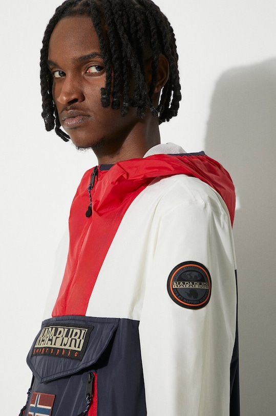 Эта куртка из коллекции Napapijri без подкладки выполнена из ткани с рисунком. Воротник-стойка обеспечивает дополнительную защиту от холода. - Изделие содержит переработанные волокнистые материалы. - Простой дизайн, не стесняющий движений. - Поднятый воротник и несъемный капюшон обеспечивают дополнительную защиту от холода. - Застежка на короткую молнию. - Рукава отделаны манжетами для защиты от неблагоприятных погодных условий. - Нижние края рукавов отделаны кулиской со стопорами и ребристым манжетом. - Застежка-молния сбоку. - Передний карман с застежкой на липучке и молнии. - Внешние карманы на молнии. - Модель с сетчатой подкладкой. - Длина рукава: 66 см. - Длина: 70 см. - Ширина под мышками: 53 см. - Ширина плеч: 50 см. - Размеры указаны для размера: M.