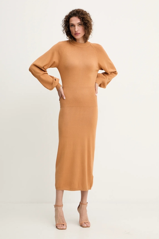 Это платье из коллекции Silvian Heach выполнено из тонкого, эластичного трикотажа. Модель выполнена из исключительно комфортного материала с высоким содержанием вискозы. - Простой дизайн, не стесняющий движений. - Классический круглый вырез. - Рукава реглан благодаря своей конструкции обеспечивают большую свободу движений. - Эластичный пояс. - Рукава отделаны удобными эластичными манжетами. - Длина рукава (от горловины): 76 см. - Ширина под мышками: 44 см. - Ширина талии: 28 см. - Длина: 132 см. - Размеры указаны для размера: S.