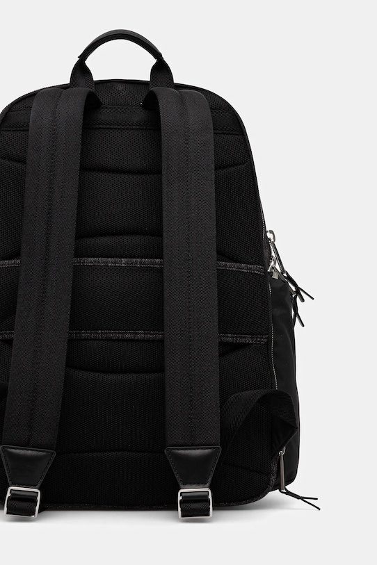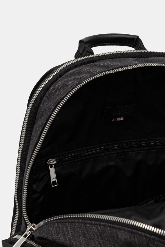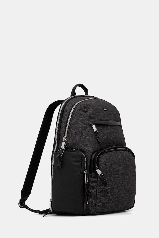 Рюкзак из коллекции BOSS. Изготовлен из комбинации текстиля и натуральной кожи. - Изделие содержит переработанные волокнистые материалы. - Двухкамерная модель. - Застежка-молния. - Скрытый защитный карман на молнии сзади. - Модель на подкладке. - Вмещает формат А4. - Ремешок на задней панели позволяет прикрепить к ручке чемодана. - Два кармана на молнии спереди для удобного хранения мелких предметов. - Два внутренних кармана: один накладной и один на молнии. - Боковые карманы. - Короткая ручка для удобной переноски в руке. - Мягкие плечевые ремни обеспечивают высокий комфорт использования. - Регулируемые ремни позволяют индивидуально подгонять их длину под пользователя. - Глубина: 14 см. - Высота: 43 см. - Ширина у основания: 31 см.