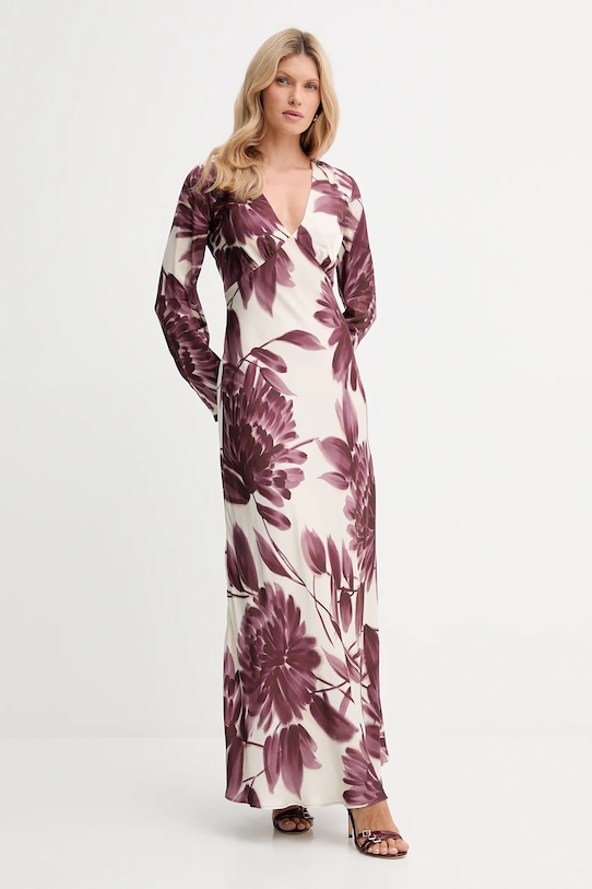 Это платье из коллекции Twinset выполнено из тонкой, неэластичной ткани. Модель выполнена из нежного, воздушного материала, идеально подходящего для теплого времени года. - Расклешенный крой. - Декоративный, заостренный вырез. - Застегивается на пуговицы сзади. - Удобная застежка-молния сбоку позволяет легко надевать и снимать. - Модель без подкладки. - Модель выполнена из материала атласного переплетения. - Длина рукава: 61 см. - Длина: 153 см. - Ширина под мышками: 46 см. - Размеры указаны для размера: 36.