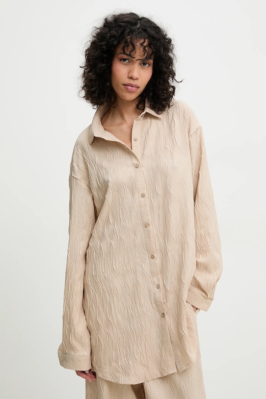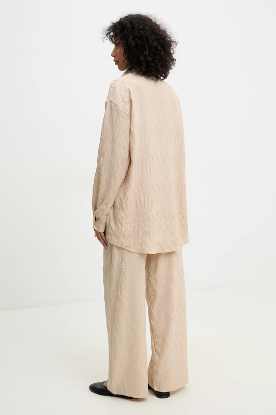 Рубашка и брюки из коллекции Answear.LAB, выполненные из тонкой неэластичной ткани. Модель выполнена из исключительно комфортного и качественного материала. - Свободный крой, обеспечивающий полную свободу движений. - Удобная застежка на кнопки позволяет легко надевать и снимать. - Модель с воротником. - Крой рукава со спущенной линией плеча не ограничивает подвижность. - Рукава с манжетами на пуговицах. - Прямая нога полной длины. - Широкий эластичный пояс. - Два боковых накладных кармана. - Длина: 84,5 см. - Ширина под мышками: 60 см. - Ширина талии: 36 см. - Ширина бедер: 61 см. - Высота талии: 36 см. - Ширина штанины внизу: 29,5 см. - Ширина штанины: 35,5 см. - Длина внешней части штанины: 104,5 см. - Указаны размеры: S/M.
