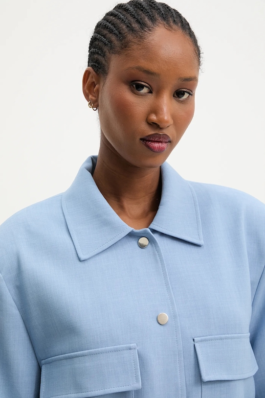 Куртка из коллекции Answear LAB. Эта неутеплённая модель выполнена из гладкой ткани. Содержание полиэстера делает материал менее мнущимся. - Простой дизайн, не стесняющий движений. - Дополнительный слой материала в виде подкладки увеличивает покрытие и обеспечивает дополнительный комфорт во время активности. - Модель с мягким воротником. - В плечах вшиты подкладки. - Длинный рукав. - Рукава и низ изделия отделаны манжетами для защиты от неблагоприятных погодных условий. - Два боковых накладных кармана. - Модель с декоративными клапанами. - Застежка-кнопка по всей длине обеспечивает легкую и эффективную вентиляцию. - Длина рукава: 58 см. - Длина: 52 см. - Ширина под мышками: 52 см. - Ширина плеч: 45 см. - Размеры указаны для размера: S.