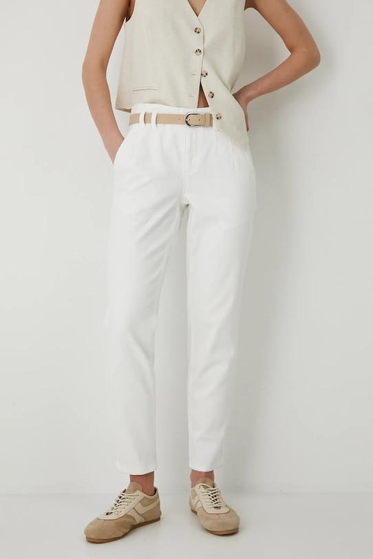 Эти джинсы-морковки с высокой талией из коллекции Medicine выполнены из гладкого денима. - Фасон «морковка» (Carrot Cut) — джинсы, более свободные в бёдрах, со слегка сужающимися к низу штанинами. Этот фасон подчёркивает линию талии, визуально её укорачивая и уравновешивая пропорции фигуры. Они идеально подходят для создания более формального образа, сохраняя при этом непринуждённость денима. - Модель с высокой талией, застежкой на пуговицы и молнию. - Накладные карманы. - Ремешок из эко-кожи в комплекте. - Декоративная строчка. - Гладкий материал. - Укороченная нога. - Ширина талии: 35,5 см. - Ширина бедер: 46 см. - Высота талии: 24,5 см. - Ширина штанины внизу: 14,5 см. - Длина по внутреннему шву: 70 см. - Размеры указаны для размера: 36.
