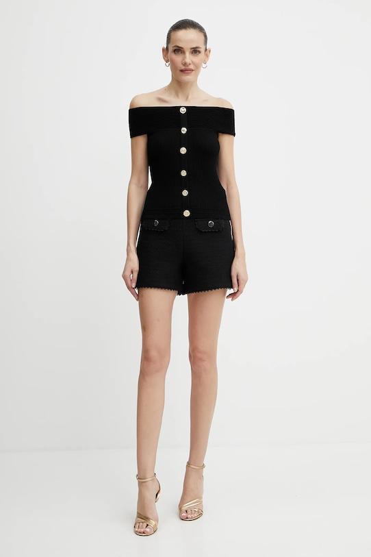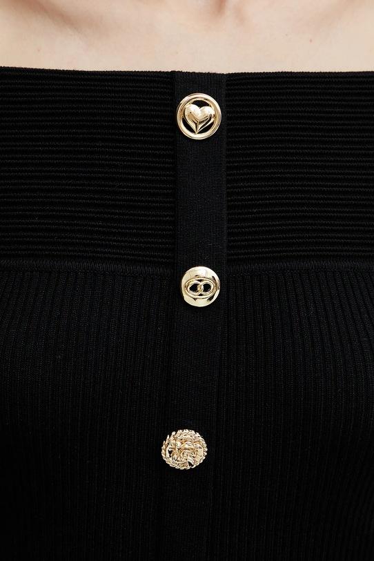 Эта блузка из коллекции Morgan выполнена из эластичного трикотажа средней плотности. Она изготовлена из дышащего материала с высоким содержанием вискозы. - Частично изготовлен из LENZING ECOVERO, экологически чистого материала. LENZING ECOVERO производится из органической целлюлозы и древесной массы, используя на 50% меньше воды, чем популярная вискоза. - Приталенный крой, подчеркивающий силуэт. - Испанский вырез. - Короткий рукав. - Имитация застежки на пуговицы. - Модель с декоративными пуговицами. - Модель выполнена из трикотажного полотна в рубчик, которое отличается особой эластичностью и мягкостью, благодаря чему хорошо облегает тело и обеспечивает комфорт при носке. - Длина: 50 см. - Ширина под мышками: 36 см. - Размеры указаны для размера: S.