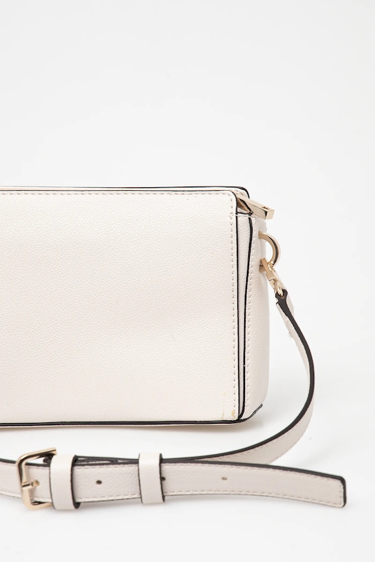 Небольшая сумочка из коллекции Guess. Модель на молнии изготовлена из искусственной кожи, которая легко чистится и ухаживается. Материал плотный и хорошо держит форму. - Имеет три отделения, одно из которых застегивается на молнию. - Имеет внутренний карман на молнии и отделения для карт. - Усиленное дно сумки позволяет изделию долго сохранять форму. - Сумка для ношения через плечо. - Съемный регулируемый ремешок позволяет индивидуально подогнать посадку. - Не подходит для формата А4. - Модель на подкладке. - Количество расстегивающихся отделений: 2. - Количество отделений на молнии: 1. - Количество внутренних карманов на молнии: 1. - Количество слотов для карт: 3. - Глубина: 7 см. - Высота: 13,5 см. - Ширина у основания: 21 см.