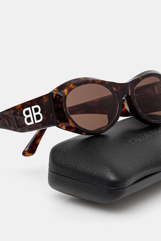Солнцезащитные очки из коллекции Balenciaga. Эта модель с гладкими линзами и пластиковой оправой оснащена защитой от ультрафиолета UV 400. Полученный вами футляр может отличаться от представленного на фотографии. Футляры отправляются производителем случайным образом, поэтому выбрать футляр невозможно. - Изделие содержит переработанные волокнистые материалы. - Фильтр UV 400 обеспечивает максимальную защиту от солнечного излучения. - Категория 3 (пропускает 8–18% света) — самая распространённая и универсальная категория затемняющих фильтров. Очки категории 3 идеально подходят для повседневного использования в солнечные дни и для отдыха в жарких странах. - В комплект модели входят чехол и салфетка для протирки очков. - Ширина рамы: 150 мм. - Ширина линзы: 60 мм.
