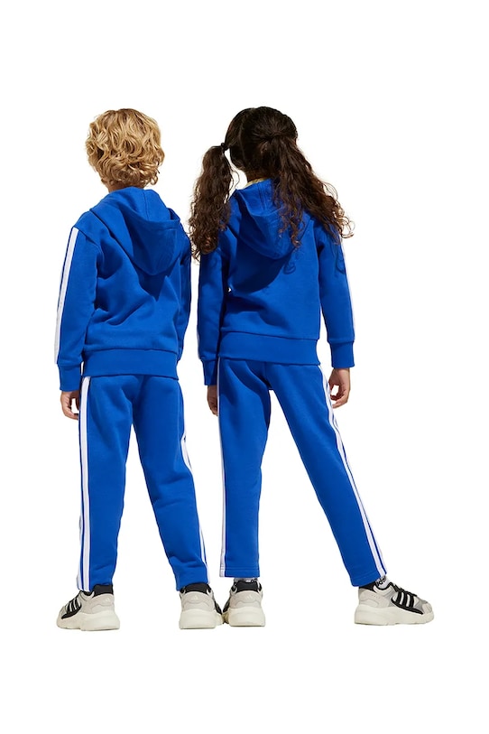 Этот детский спортивный костюм из коллекции adidas выполнен из трикотажного полотна. Он невероятно комфортен и отличается высоким содержанием хлопка. - Данное изделие частично изготовлено из переработанного полиэстера. - Простой дизайн, не стесняющий движений. - Удобная застежка-молния позволяет легко надевать и снимать. - Встроенный капюшон обеспечивает дополнительное тепло и защиту при необходимости. - Рукава и низ изделия отделаны удобными эластичными манжетами. - Два боковых накладных кармана. - Эластичный пояс и дополнительная регулировка ширины с помощью шнурков для предотвращения сползания во время движения. - Мягкая внутренняя отделка обеспечивает высокий комфорт использования и оптимальный тепловой комфорт. - Тонкий, эластичный трикотаж.