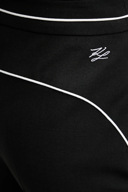 Эти брюки из коллекции Karl Lagerfeld сшиты из тонкой, слегка эластичной ткани. Высокое содержание шерсти обеспечивает защиту от холода, а добавление полиэстера повышает устойчивость к сминанию. - Застежка на молнию, пуговицы и крючок. - Два боковых накладных кармана. - Штанина отутюживается в складку. - Ширина талии: 35 см. - Ширина бедер: 46 см. - Высота талии: 26 см. - Ширина штанины внизу: 18 см. - Ширина штанины: 26 см. - Длина по внутреннему шву: 76 см. - Размеры указаны для размера: 36.