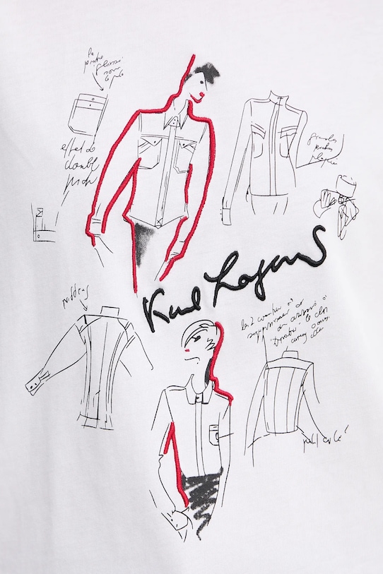 Эта футболка с изображением Карла Лагерфельда выполнена из трикотажного полотна с аппликацией. Она изготовлена из дышащего хлопка. - Приталенный крой. - Модели линейки Karl Cares изготовлены из материалов, произведенных в ходе устойчивого, экологически чистого процесса производства. - Короткий рукав. - Классический круглый вырез. - Модель с декоративной вышивкой. - Модель с принтом. - Тонкий, эластичный трикотаж. - Длина: 63 см. - Ширина под мышками: 46 см. - Размеры указаны для размера: S.