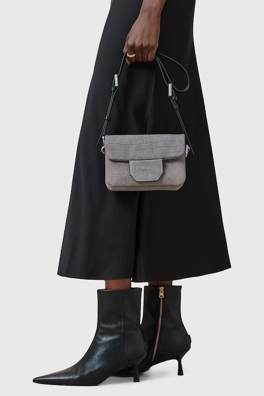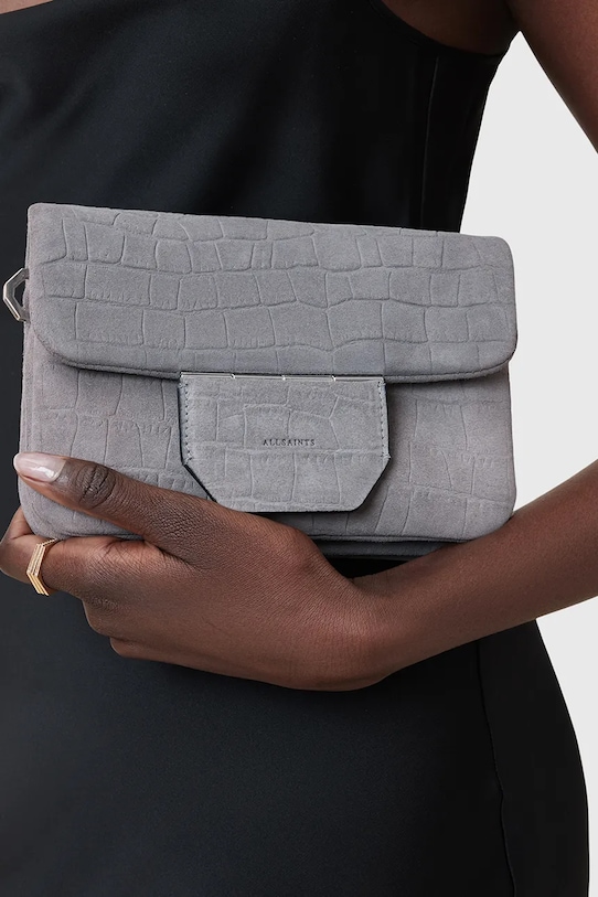 Небольшая сумка из коллекции AllSaints. Эта модель на молнии изготовлена из коровьей кожи, которая отличается исключительной прочностью и эластичностью. - Эта модель изготовлена в соответствии с рекомендациями Leather Working Group, которая сертифицирует кожевенные заводы посредством строгих аудитов. Эти усилия направлены на снижение потребления энергии и воды при дублении кожи, а также на устранение загрязнения сточных вод. - Сумка для ношения в руке или на плече. - Присоединяемый длинный ремешок с регулировкой. - Он состоит из двух камер. - Входящий в комплект тканевый чехол защищает изделие от пыли. - Глубина: 3,5 см. - Высота: 14 см. - Ширина у основания: 18 см. - Минимальная длина ремешка: 24 см. - Максимальная длина ремня: 50 см.