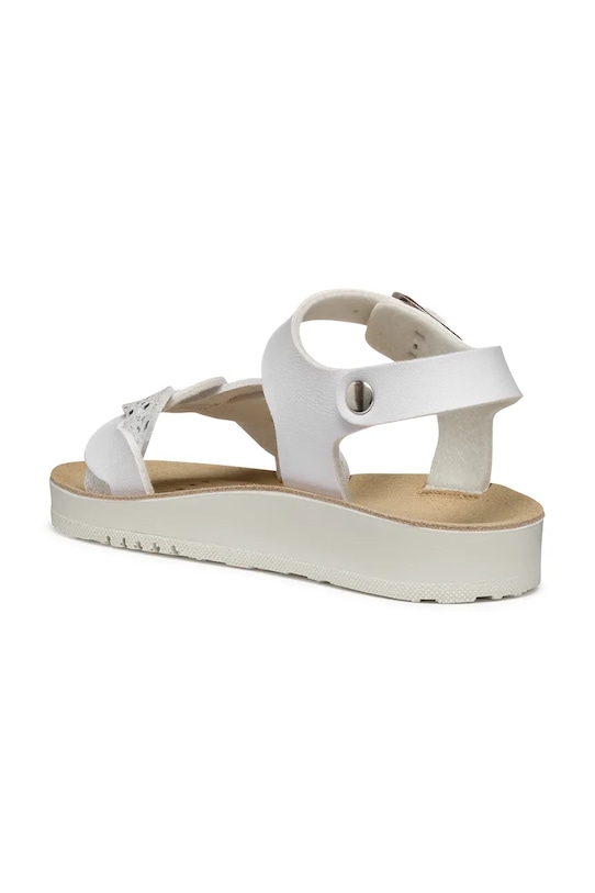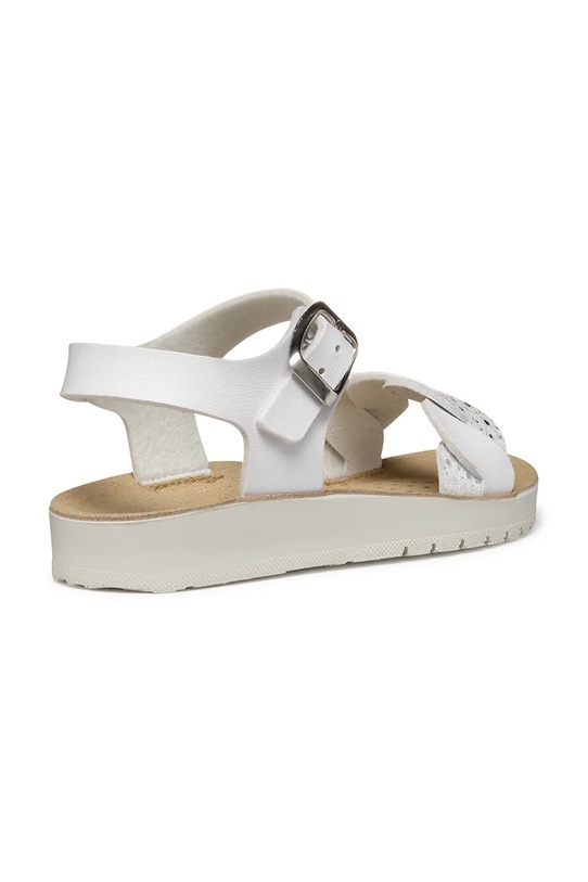 Детские сандалии из коллекции Geox из экокожи. Непористый верх легко чистится влажной тканью. - Geox Respira System: в них реализована технология Geox Respira, которая благодаря трехслойной подошве с дышащей системой перфорации улучшает вентиляцию, тем самым заботясь о здоровье ваших ног и обеспечивая комфорт при использовании обуви. - Стелька Geox: перфорированная кожаная стелька улучшает циркуляцию воздуха внутри обуви. Она обладает антибактериальными и дышащими свойствами. Благодаря системе Anti-Shock она обеспечивает оптимальную амортизацию и комфорт. Стелька имеет анатомическую форму для правильного положения стопы. - Легкая подошва Flexy System обеспечивает свободу движений благодаря своей гибкости. - Застежка-пряжка со штифтом для индивидуальной подгонки.