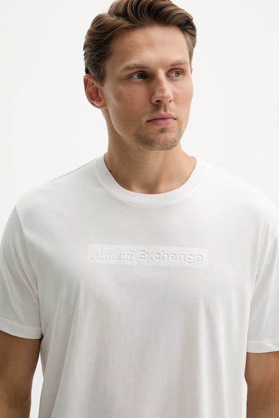 Эта футболка из коллекции Armani Exchange выполнена из тонкой эластичной ткани, в состав которой входит дышащий хлопок. - Модель из линейки Armani Sustainability Values, изготовленная частично из органических волокон, при производстве которых используется значительно меньше химикатов и электроэнергии. — Продукт из серии «Инвестирование в Better Cotton». Better Cotton — ведущая в мире инициатива по устойчивому развитию хлопка, миссия которой — помочь хлопковым общинам выживать и процветать, одновременно защищая и восстанавливая окружающую среду. - Простой дизайн, не стесняющий движений. - Круглый ребристый вырез. - Короткий рукав. - Модель с логотипом бренда. - Длина: 75 см. - Ширина под мышками: 56 см. - Размеры указаны для размера: M.