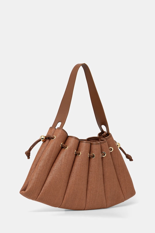 Сумка среднего размера из коллекции Themoire. Модель с застёжкой выполнена из комбинации соломки и экокожи. Высококачественное изделие, произведенное в Италии. - Текстильный чехол, защищающий изделие от пыли, изготовлен из органического хлопка, который выращивается без использования вредных химикатов, химических пестицидов и искусственных удобрений. - Камера затягивается шнурками. - Внутренний карман на молнии для удобного и безопасного хранения телефона и других мелких предметов. - Съемный держатель для карт. - Сумка для ношения в руке или на плече. - Длинная ручка. - Не подходит для формата А4. - Модель без подкладки. - Количество внутренних карманов на молнии: 1. - Глубина: 6 см. - Высота: 27 см. - Ширина у основания: 48 см.