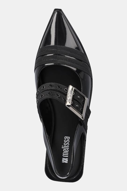 Эти балетки Melissa изготовлены из синтетического материала. Их гибкий верх легко адаптируется к форме стопы. - Обувь бренда Melissa является веганской и производится в соответствии с принципами устойчивого развития, обеспечивая низкий уровень выбросов CO2 и активно участвуя в процессе переработки. - Обувь изготовлена из уникального ароматизированного материала Mel-flex — смеси пластика и резины с характерным запахом жевательной резинки. - Заостренный, мягкий нос. - Модель с открытой пяткой. - Резиновая подошва прочная и устойчивая к повреждениям. - Профилированная, мягкая стелька гарантирует комфорт использования. - Застежка на две пряжки со штифтом для индивидуальной посадки. - Длина вставки: 23 см. - Размеры указаны для размера: 35/36.