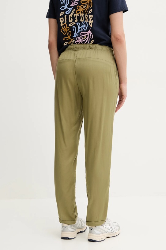 Брюки из коллекции Picture из тонкой, неэластичной ткани. Модель выполнена из исключительно комфортного материала с высоким содержанием лиоцелла. - Лиоцелл TENCEL — это шёлкоподобная ткань из древесной целлюлозы. Этот материал производится экологичным способом, без использования токсичных веществ. - Брюки слегка приталенные на бедрах. - Крой с зауженными брючинами, не стесняющими движений. - Эластичный пояс и дополнительная регулировка ширины с помощью шнурков для предотвращения сползания во время движения. - Два боковых накладных кармана. - Ширина талии: 40 см. - Ширина бедер: 54 см. - Высота талии: 29 см. - Ширина штанины внизу: 17,5 см. - Ширина штанины: 28 см. - Длина внешнего шва: 100 см. - Размеры указаны для размера: S.