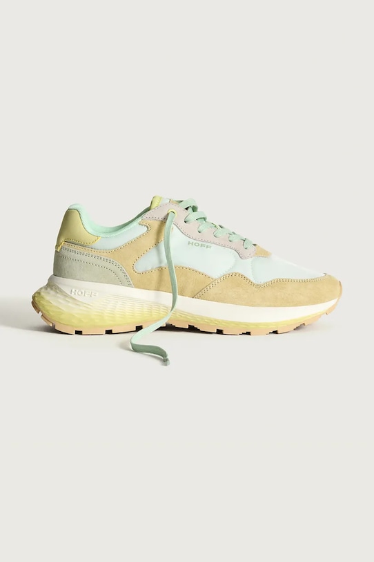 Кроссовки из коллекции Hoff. Эти лёгкие и удобные кроссовки, изготовленные из комбинации натуральной кожи, текстиля и синтетических материалов, идеально подойдут для повседневной носки. - Круглый, жёсткий носок. - Текстильная внутренняя часть комфортна для ног и облегчает содержание обуви в чистоте. - Вставка Memory Tech размягчается под воздействием тепла, что позволяет ей лучше принимать форму тела, равномерно распределяя вес. Она характеризуется медленным восстановлением после сжатия. - Усиленный задник с мягким наполнителем защищает пятку от истирания. - Классическая шнуровка позволяет индивидуально подогнать обувь по ноге. - Подошва изготовлена из комбинации пены и резины. - Прочная рифленая подошва обеспечивает надежное сцепление с землей.