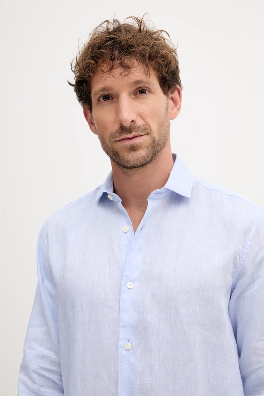 Эта рубашка из коллекции Frescobol Carioca выполнена из тонкой, неэластичной ткани. Высококачественный продукт, произведенный в Португалии. - Рубашка прямого кроя мягко облегает фигуру, но не подчеркивает ее, обеспечивая свободу движений. - Слегка усиленный классический воротник Kent. - Длинный рукав. - Мягкие манжеты с застежкой на пуговицы. - Застежка на пуговицы позволяет легко надевать и снимать. - Удлиненный задний край обеспечивает защиту во время движения. - Льняной материал обеспечивает комфорт и воздухопроницаемость. - Окружность воротника: 40 см. - Длина рукава: 64 см. - Длина спереди: 77,5 см. - Длина спинки: 80,5 см. - Ширина под мышками: 55 см. - Ширина плеч: 46 см. - Размеры указаны для размера: M.