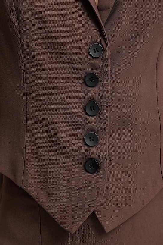 Жилет и юбка из коллекции Answear.LAB, выполненные из тонкой, неэластичной ткани. Модель выполнена из дышащего материала с высоким содержанием вискозы. - Приталенный верх и прямой низ. - Дополнительный слой материала в виде подкладки увеличивает покрытие и обеспечивает дополнительный комфорт во время активности. - Классические лацканы. - Однобортный пиджак с застежкой на пуговицы. - Более длинный фронт. - Высокая талия обеспечивает комфорт во время занятий спортом и позволяет визуально стройнить фигуру. - Застегивается сбоку на потайную молнию. - Гладкая ткань. - Длина спереди: 44 см. - Длина спинки: 58 см. - Ширина под мышками: 45 см. - Ширина талии: 35 см. - Длина юбки: 92 см. - Размеры указаны для размера: S.
