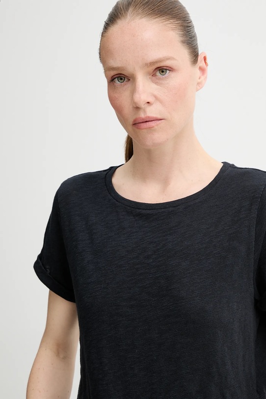 - Простой дизайн, не стесняющий движений. - Классический круглый вырез. - Короткий рукав. - Длина: 55 см. - Ширина под мышками: 44 см. - Размеры указаны для размера: S.